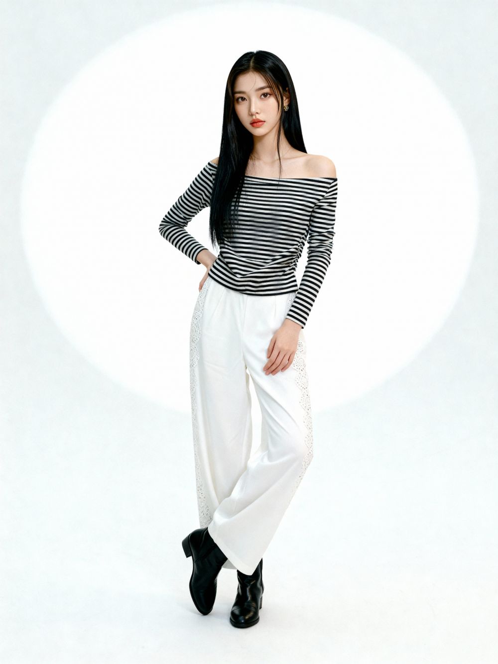 Off Shoulder Side Gather Stripes Top
