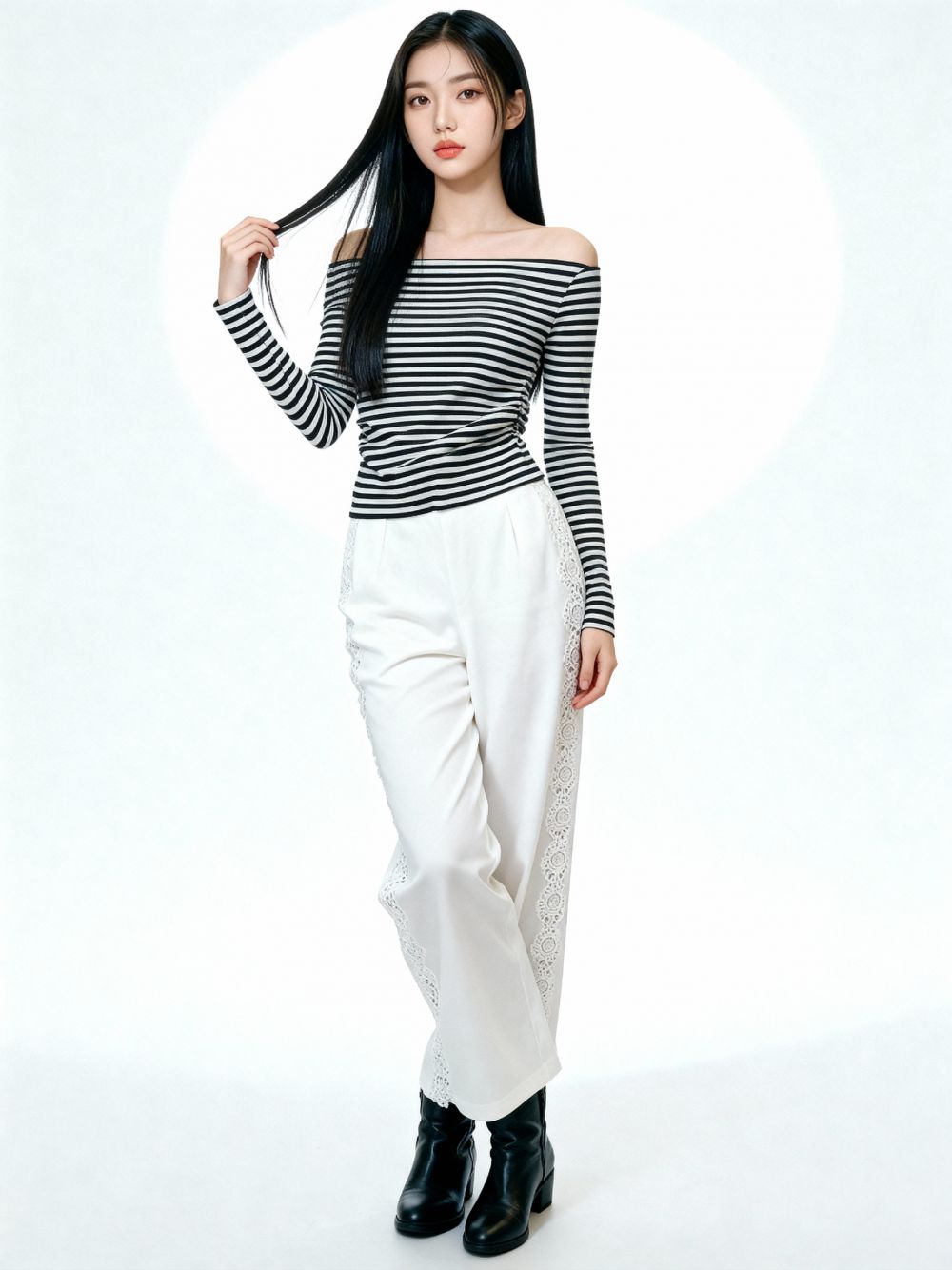 Off Shoulder Side Gather Stripes Top