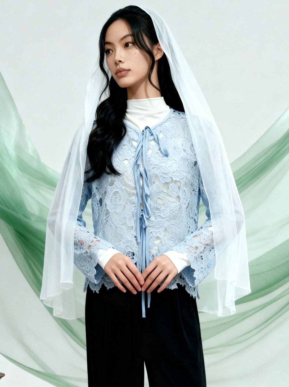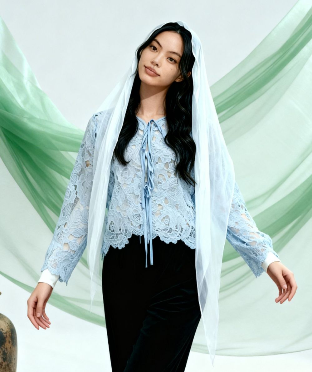 Nira Embroidery Outer With Ribbon Tied